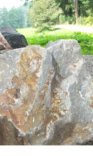 abgerundete Steine aus dem tertiären Basalt des Landberges.